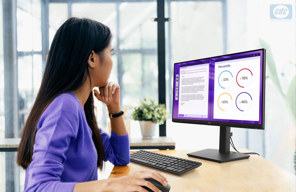 Khi thử nghiệm tại showroom Máy Tính CDC, tấm nền cho độ tương phản cao, màu trung tính, giúp chữ rõ nét và dễ đọc hơn trên nền sáng.Đây là màn hình “nhìn lâu không mỏi”, đúng nghĩa dành cho dân văn phòng.