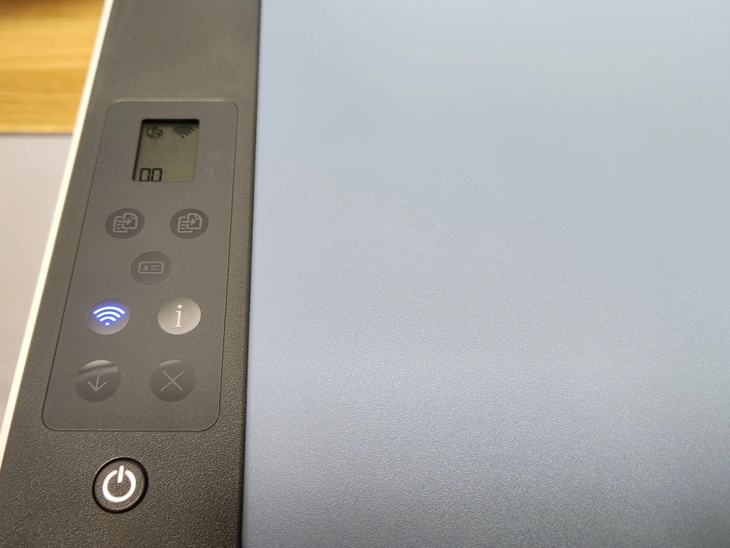 Mặt trên của máy là khay scan phẳng cùng màn hình nhỏ hiển thị trạng thái, các nút cảm ứng mềm giúp thao tác copy – scan trở nên nhanh chóng. Nhìn chung, thiết kế của HP Smart Tank 585 phù hợp cho người dùng muốn một thiết bị All-in-One đơn giản, dễ vận hành.