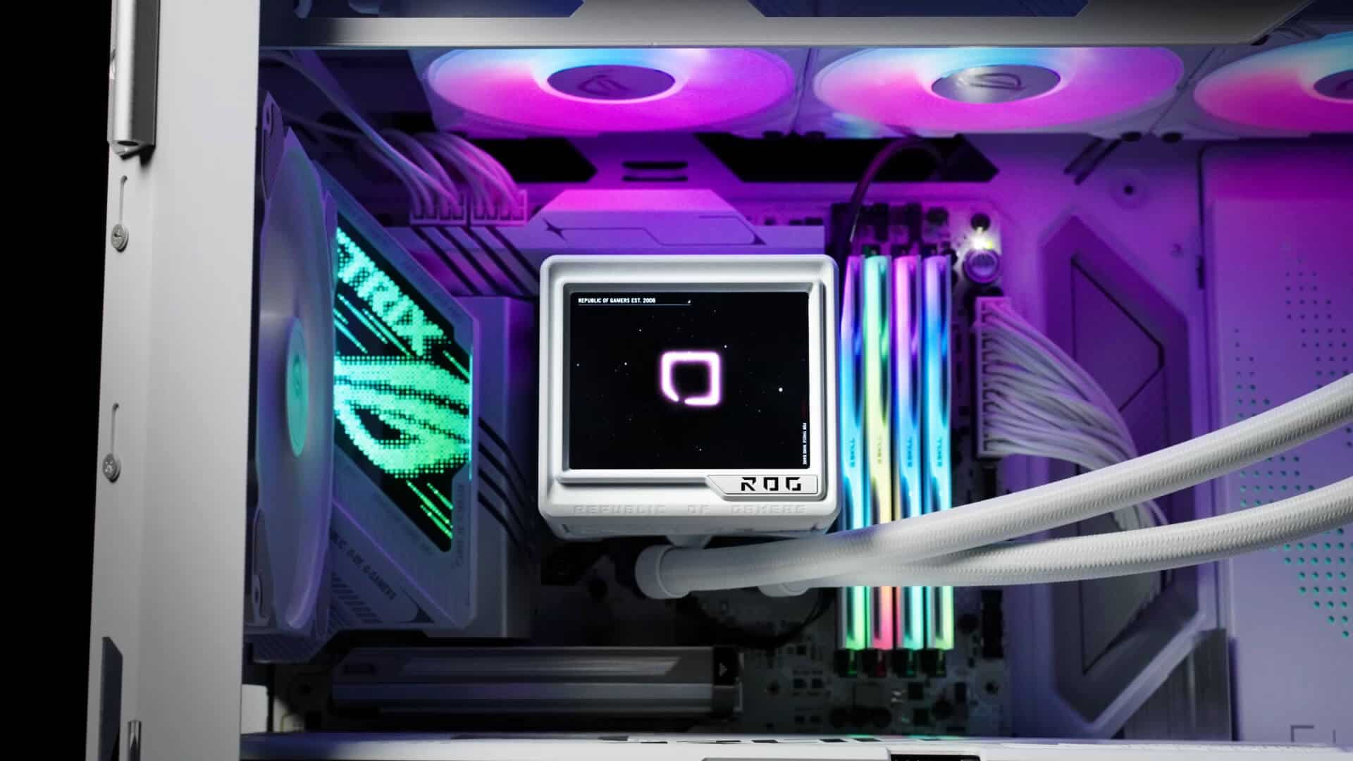 Quạt đi kèm thuộc dòng ROG Magnetic Daisy-Chain ARGB, tốc độ cao – độ ồn thấp – ổn định và đặc biệt mát. Cộng hưởng cùng radiator 360mm, toàn bộ hệ thống vận hành mượt mà ngay cả khi bạn đẩy hiệu năng lên mức tối đa.