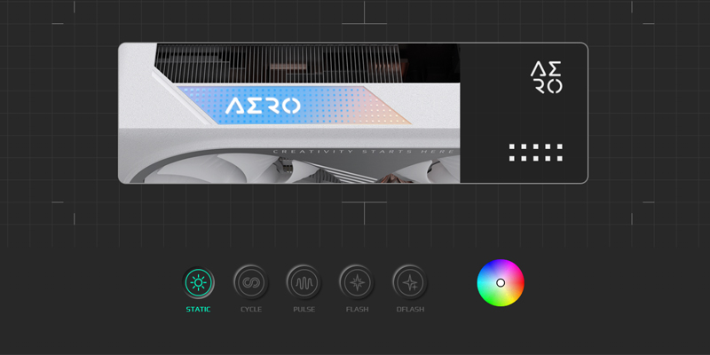 Ở mặt trên của VGA Gigabyte RTX 4060 Ti GAMING OC 16GB là logo RGB, đem đến cho người dùng 16,7 triệu màu phát sáng cùng nhiều hiệu ứng phát sáng khác nhau đày rực rỡ và vô cùng bắt mắt. Các bạn chỉ cần thao tác với Gigabyte RTX 4060 Ti GAMING OC 16GB là đã có thể tùy chỉnh với mọi yêu cầu của mình hay đồng bộ với các linh kiện còn lại của máy tính.