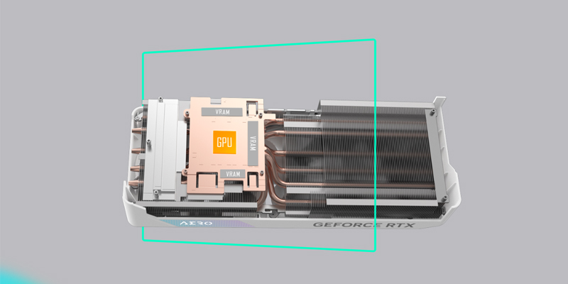Ngoài ra, VGA Gigabyte GeForce RTX 4070 Ti Super Aero OC 16G GDDR6X còn có tấm đồng lớn tiếp xúc trực tiếp với GPU,kèm với các ống dẫn nhiệt composite giúp truyền nhiệt nhanh chóng của GPU và VRAM tới tản nhiệt.