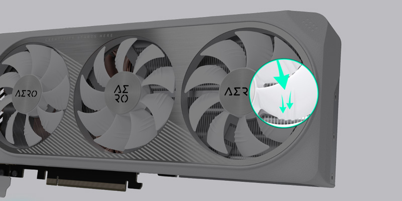 Các lưỡi quạt của VGA GIGABYTE GeForce RTX 4070 Ti Super Aero OC 16G GDDR6X cũng được thiết kế với mép quạt hình tam giác và được dẫn hướng mượt mà qua đường cong sọc 3D trên bề mặt, giúp cho các luồng khí được lưu thông tốt hơn, đảm bảo khả năng tản nhiệt được hiệu quả và trơn tru hơn. Hệ thống tản nhiệt WINDFORCE cũng được trang bị 3 fan 90mm, quay luân phiên cùng 8 ống dẫn nhiệt bằng đồng giúp mang lại khả năng tản nhiệt hiệu quả cao.