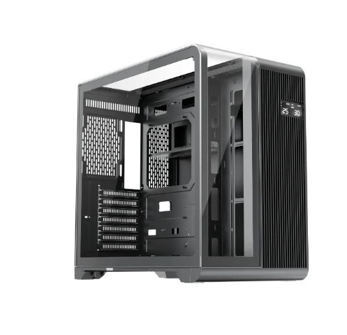 So với những mẫu case phổ thông, RT7 Black tạo ra cảm giác rất khác: nam tính, góc cạnh và dứt khoát. Mặt trước thiết kế cắt xẻ dạng “combat style”, kết hợp lưới mesh giúp case vừa đẹp vừa thông thoáng. Khoảng kính cường lực bên hông rộng, để lộ trọn vẹn nội thất bên trong — rất hợp với những ai thích chơi RGB hoặc muốn khoe GPU – RAM – tản AIO. Phiên bản màu đen khiến tổng thể case trở nên mạnh mẽ và trưởng thành hơn, phù hợp cho các góc setup tông đen hoặc phong cách gaming hiện đại.