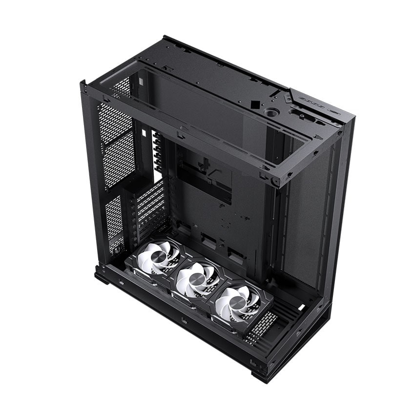 NV7 không chỉ đẹp mà còn cực kỳ rộng rãi. Case hỗ trợ mainboard ATX – E-ATX, GPU khổng lồ và nhiều thiết bị lưu trữ. Không gian trong case được chia theo kiểu “mở”, tạo cảm giác thoáng và dễ tận dụng. Điểm ấn tượng nhất là vị trí lắp radiator và quạt: NV7 hỗ trợ radiator 360mm, 420mm, thậm chí có thể kết hợp nhiều vị trí cùng lúc nếu bạn muốn build custom loop chất lượng cao. Nhờ phần khung lớn và layout thông minh, việc sắp xếp linh kiện trở nên nghệ thuật hơn — mỗi món đồ bạn lắp vào đều có thể trở thành một điểm nhấn.